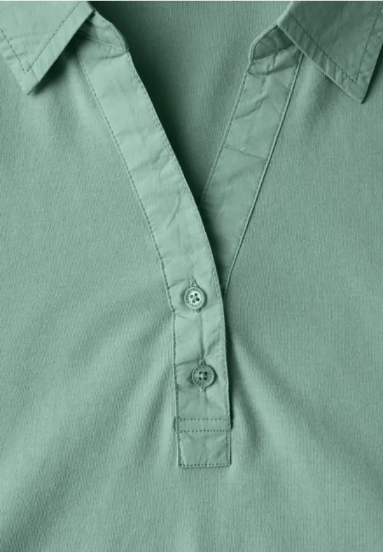 Het CECIL poloshirt voor dames is een klassieke allrounder. De polokraag met decoratieve knoopsluiting en afgeronde zoom geven het Shirt een sportieve touch. Het is gemaakt van puur katoen en heeft een hoog draagcomfort.