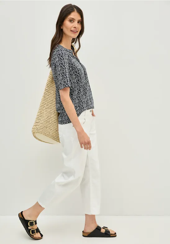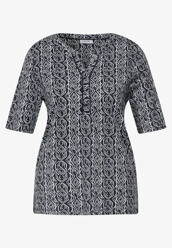 Dit Shirt van CECIL voor dames heeft een openvallende halslijn, een grafisch patroon en een zachte katoen-modaalmix. De tuniek-look geeft het Shirt een casual elegantie, terwijl de comfortabele snit zorgt voor een behaaglijke pasvorm. Een stijlvolle metgezel voor elke dag.