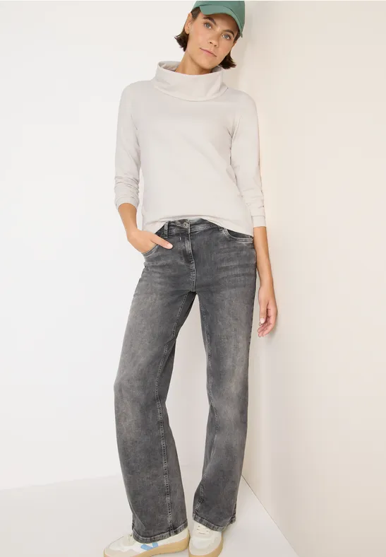 Dit CECIL Shirt voor dames heeft een knusse kraag en een casual snit. De elastische zoom en de zachte modalmix met stretchgehalte maken het bijzonder comfortabel om te dragen. Ideaal voor knusse looks met een modieus randje.