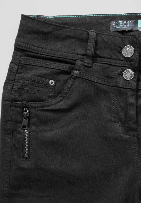 Deze slim fit broek van CECIL voor dames combineert een hoge taille met slanke pijpen voor een figuurflatterend silhouet. Het 5-pocket ontwerp en het ritsdetail geven de broek in Toronto stijl een moderne touch. De katoenmix met stretch zorgt voor een comfortabele pasvorm.