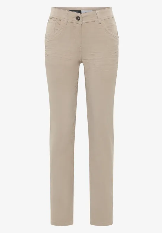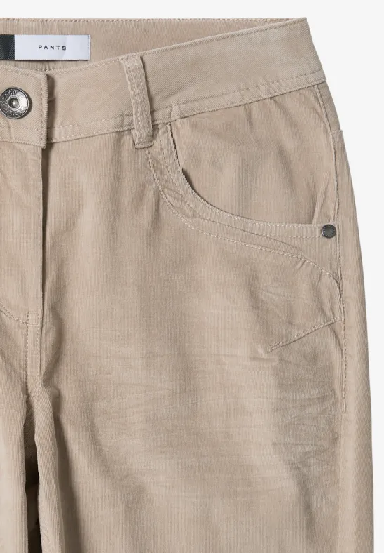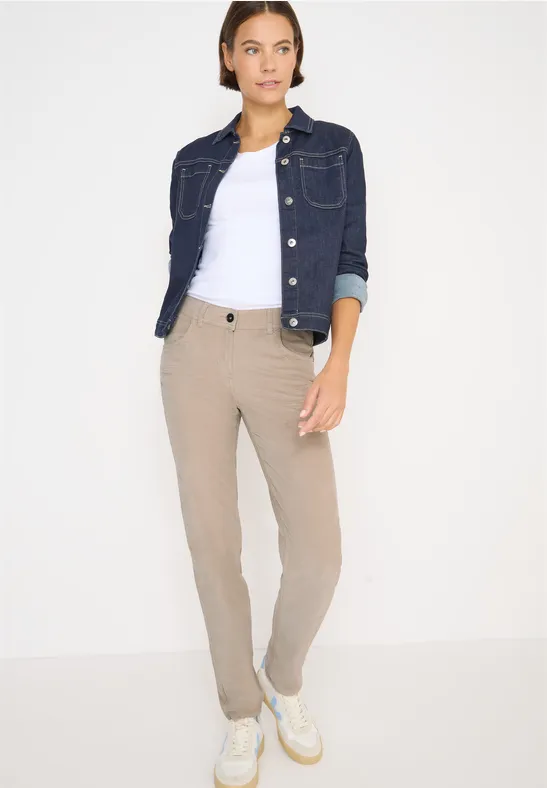 Deze corduroy broek in de Toronto stijl van CECIL voor dames combineert een Mid Waist met Slim Legs voor een vrouwelijk silhouet. De zachte corduroystof en stretchkatoenen stof maken hem comfortabel om te dragen. Ideaal voor herfstlooks met structuur.
