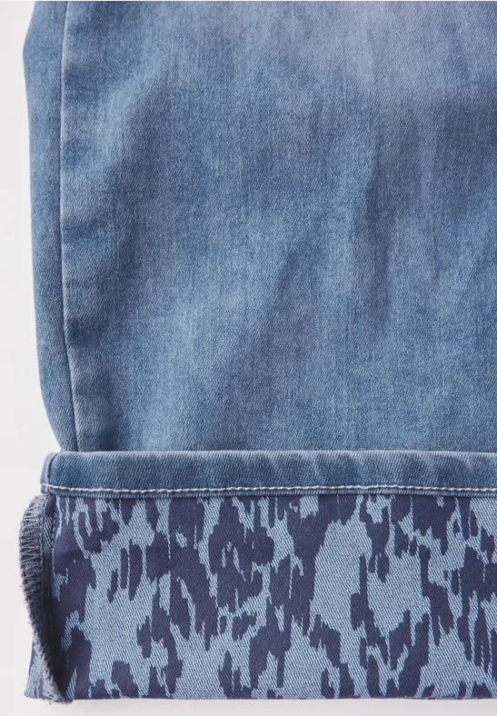 Deze jeans van CECIL voor dames heeft een Loose Fit en een High Waist. De omslag met subtiele print voegt een modieus detail toe dat je look heerlijk zomers aanvult. De blauwe wassing en de stretch katoenmix zorgen voor comfort en veelzijdigheid.