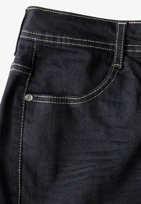 Deze jeans met rechte pijpen in de Toronto stijl van CECIL voor dames heeft een High Waist en straight legs. De gerinseerde wassing geeft ze een modieuze look. De katoenmix met stretch biedt een perfecte pasvorm en een hoog draagcomfort.