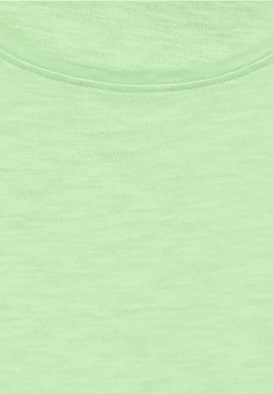 CECIL zomer-T-shirt, korte mouwen, decoratieve splitten met knopen, elastische band, katoen, effectgaren-look