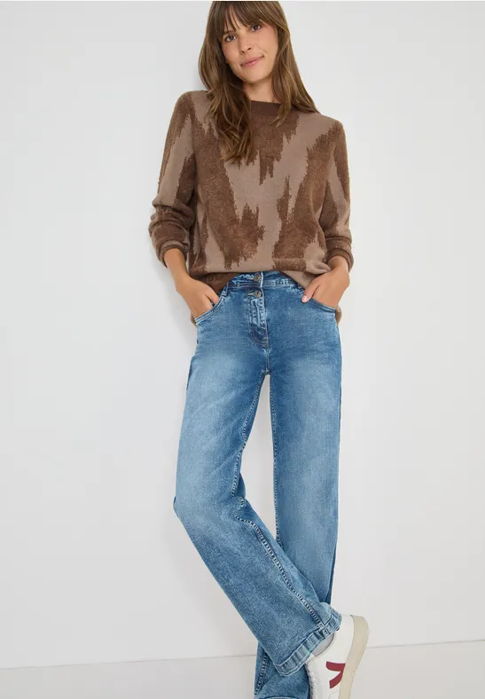 Met zijn grafische patroon is deze damestrui van CECIL een stijlvolle metgezel voor elke dag. De ronde hals en het zachte materiaal zorgen voor een allround comfortabel gevoel. Perfect om ongecompliceerd mee te combineren.