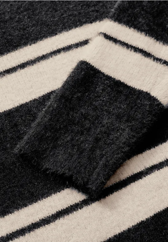 Deze trui van CECIL met verengaren combineert een klassiek streeppatroon met een elegante boothals. De comfortabele mix van materialen maakt het een knusse metgezel voor koudere dagen. Perfect voor een casual elegante look.