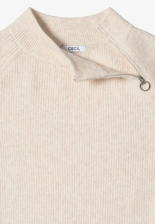 Cecil Dames Trui met structuur en ritssluiting in Beige, Gr: S