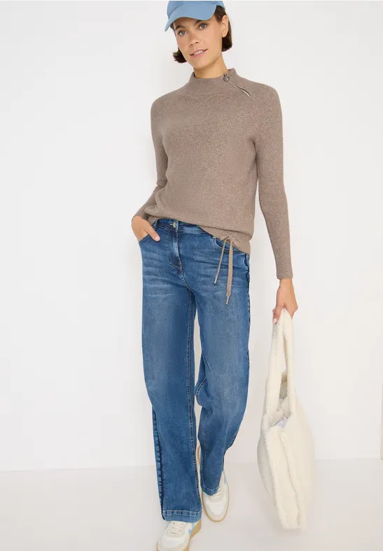 Deze getextureerde trui van CECIL voor dames heeft een col met ritssluiting en een sportief tunnelkoord aan de zoom. De katoenmix met stretch zorgt voor aangename bewegingsvrijheid en een comfortabel gevoel. Ideaal voor ontspannen vrijetijdslooks met stijl.