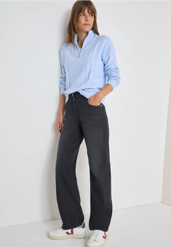 Deze gebreide trui van CECIL voor dames heeft een broekkraag en een fijn gebreid patroon. Het zachte materiaal en de lange mouwen maken hem bijzonder comfortabel om te dragen. Ideaal voor een stijlvolle, knusse look.