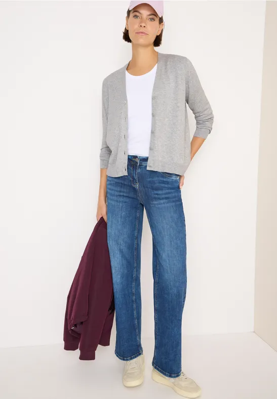 Dit damesvest van CECIL heeft een vrouwelijke V-hals en een klassieke knoopsluiting. De zachte gebreide stof maakt het comfortabel om te dragen, terwijl de lange mouwen je warm houden op koelere dagen. Een ongecompliceerde metgezel voor elke dag.