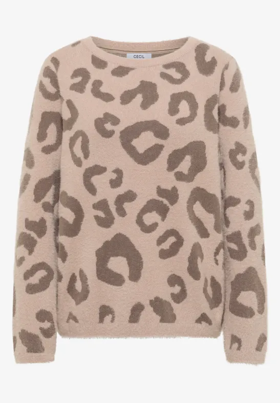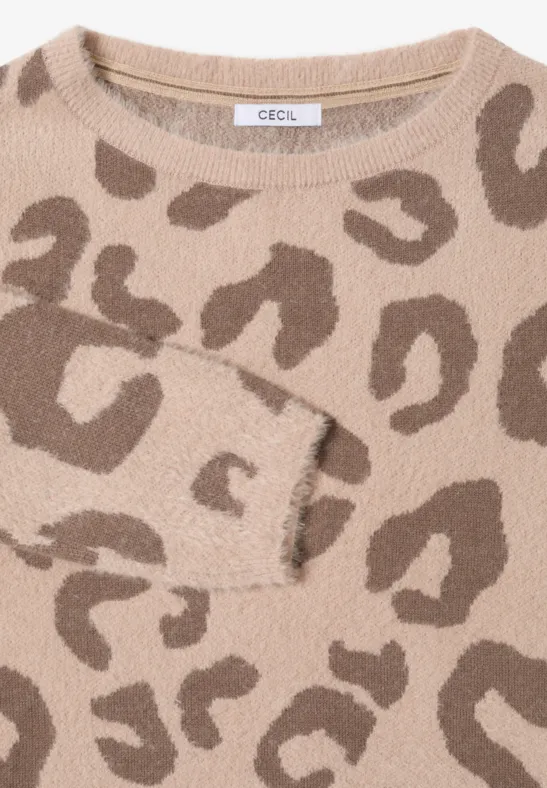 Deze damestrui van CECIL heeft een trendy luipaardmotief en een zachte verenmix voor een stijlvol accent. De ronde hals en het zachte gevoel maken hem bijzonder knus. Ideaal voor vrouwelijke outfits met modieuze verfijning.