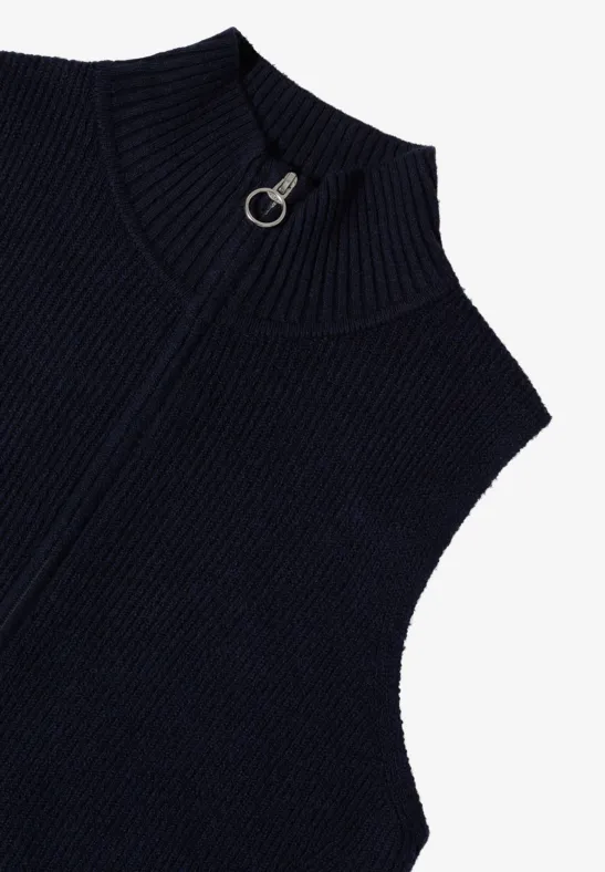 Dit gebreide gilet van CECIL voor dames zet modieuze accenten met zijn geribde textuurmix. Het mouwloze model met opstaande kraag en de comfortabele katoenmix met stretch zorgen voor een hoog draagcomfort. Perfect voor individuele laagjesoutfits.