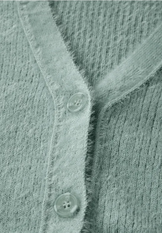 Dit pluizige vest van verengaren van CECIL voor dames brengt gezelligheid in je look. De V-hals en knoopsluiting geven het vest een vrouwelijke touch, terwijl de lange mouwen met manchetten zorgen voor een comfortabele pasvorm. De aangename katoenmix maakt het vest bijzonder zacht en comfortabel.
