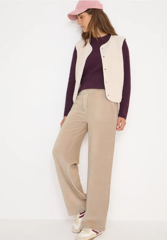 Deze corduroy broek van CECIL voor dames combineert modieuze Wide Legs met een hoog draagcomfort. Loose Fit, High Waist en Stretch in de taille zorgen voor een casual silhouet. De zachte corduroy stof met een wijde textuur maakt deze broek een gezellige blikvanger voor trendy herfstlooks.