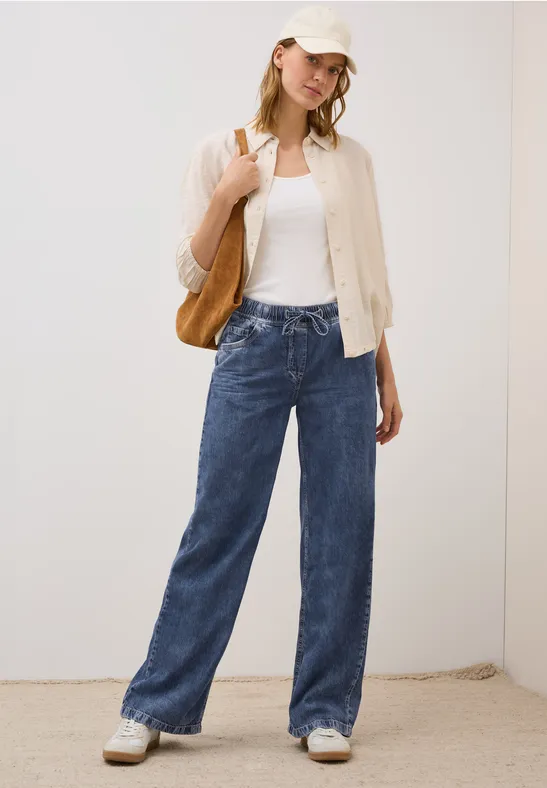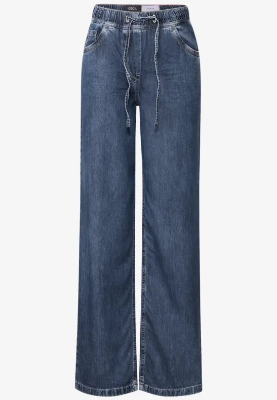 De Neele-stijljeans van CECIL voor dames heeft een High Waist, Wide Legs en een elastische tailleband met een trekkoord - voor maximaal comfort. De blauwe wassing geeft de broek een klassieke denimlook, terwijl het zachte materiaal garant staat voor een bijzonder comfortabel gevoel. Ideaal voor ontspannen alledaagse stijlen.