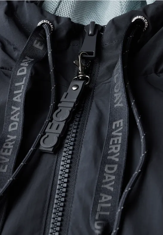 Het CECIL windjack voor dames heeft een A-lijn model en een capuchon met trekkoord. Zijsplitten en opgestikte zakken zorgen voor praktisch comfort. Een ideale metgezel voor het overgangsseizoen.