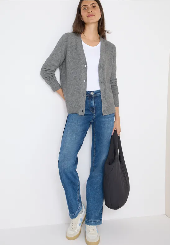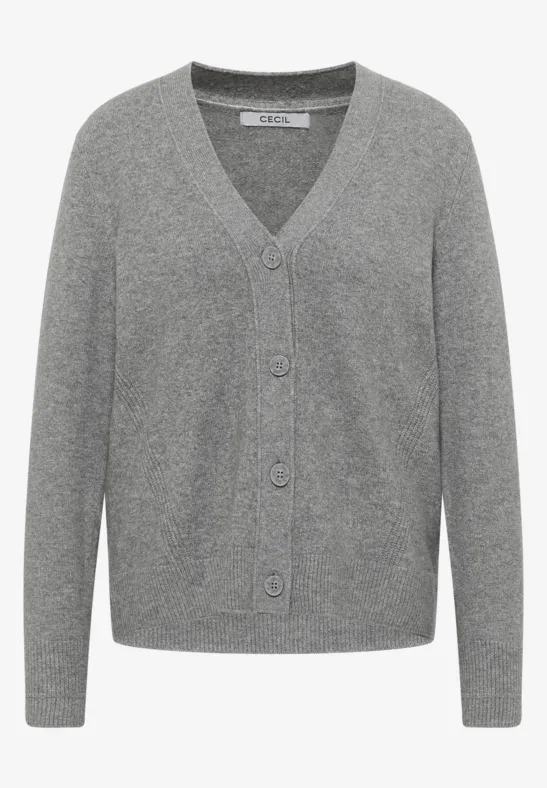 Dit damesvest van CECIL heeft een zachte katoenmix en een klassieke V-hals. De knoopsluiting en lange mouwen met manchetten geven het vest een tijdloze touch en maken het veelzijdig. Ideaal voor een ongecompliceerde, comfortabele alledaagse look.