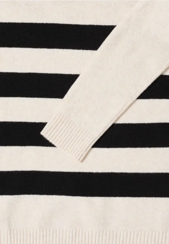 Deze zachte coltrui van CECIL combineert een tijdloos streeppatroon met een zacht gevoel. De hoge kraag en zachte gebreide stof zorgen voor warmte en comfort, terwijl de geribde boorden de look afmaken. Perfect voor frisse dagen met stijl.