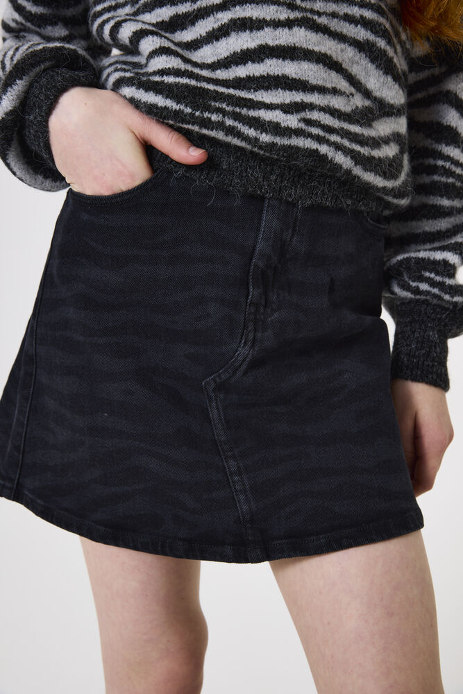 Denim rok met een luipaardprint. Deze rok heeft een hoge taille, een ritssluiting met een verstelbare tailleband en een regular fit. Dit item is gemaakt van 71% katoen, 28% polyester en 1% elastaan, wat zorgt voor een comfortabele pasvorm en een moderne uitstraling. Better Cotton is een initiatief dat zich wereldwijd inzet voor betere omstandigheden in de katoenindustrie.
