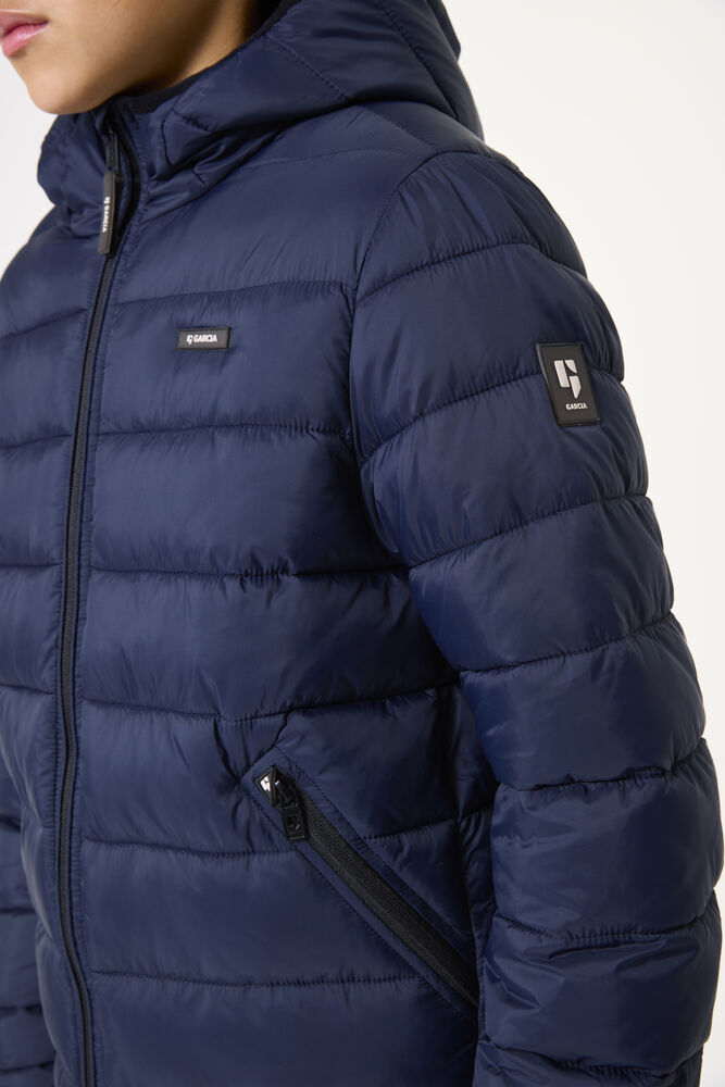 Licht gewatteerde pufferjas met logobadge. Deze gewatteerde jas is gemaakt van waterafstotend materiaal en gevoerd met een zachte imitatie dons vulling voor comfort en warmte. Verder heeft deze jas een capuchon, lange mouwen, een ritssluiting, steekzakken met een ritssluiting en een regular fit. De buitenlaag van deze jas is gemaakt van 100% polyamide.
