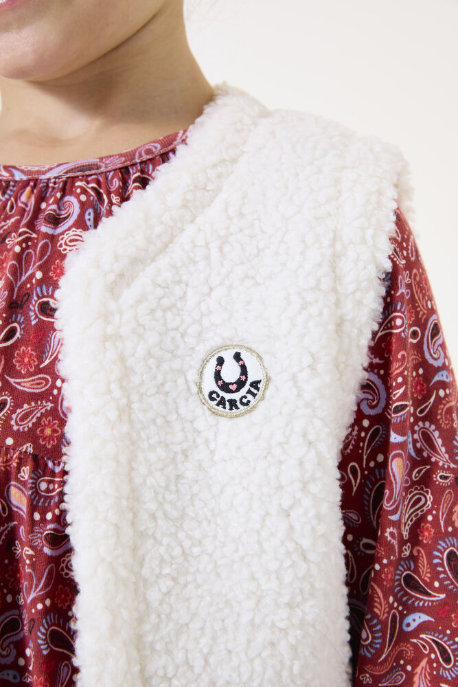 Zacht teddy gilet voor meisjes. Dit gilet heeft een V-hals, geen mouwen en een regular fit. Dit item is gemaakt van 100% gerecycled polyester. Dit GARCIA kledingstuk is gemaakt met gebruik van recyclede garen. Recyclede materialen worden gemaakt uit restmateriaal, wat weer wordt omgezet tot grondstof.