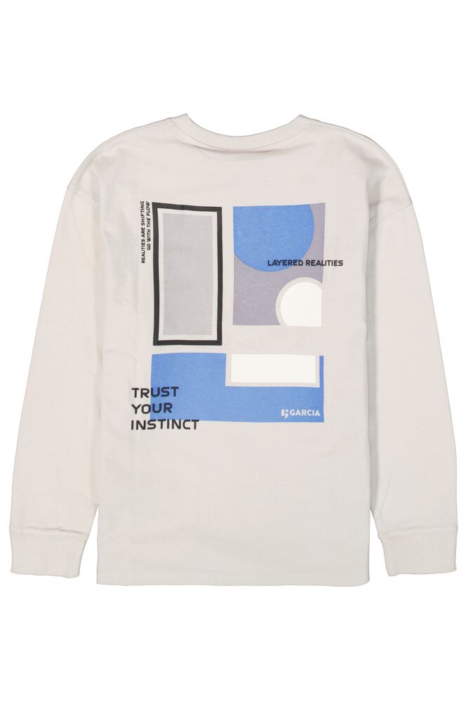 Longsleeve met borst- en rugprint. Dit item is ideaal voor dit seizoen.Deze longsleeve heeft lange mouwen, een ronde hals en een dropped shoulder fit. Dit item is gemaakt van 50% katoen en 50% recycled katoen. Dit GARCIA kledingstuk is gemaakt met gebruik van recyclede garen. Recyclede materialen worden gemaakt uit restmateriaal, wat weer wordt omgezet tot grondstof.