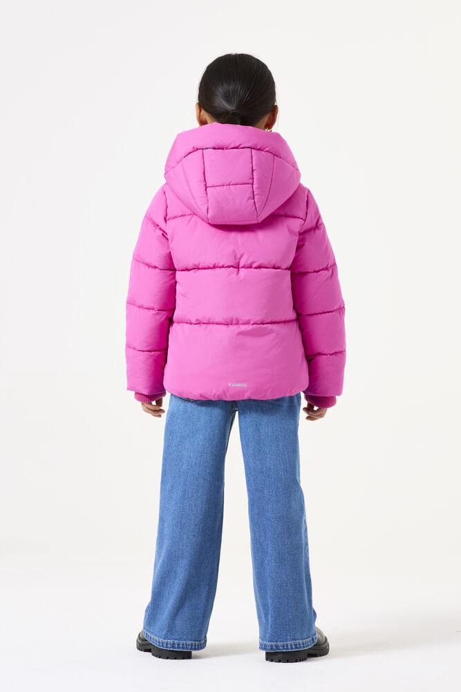 Felle gewatteerde puffer met capuchon. Deze gewatteerde jas is gemaakt van waterafstotend materiaal en gevoerd met een zachte imitatie dons vulling voor comfort en warmte. Verder heeft deze jas lange mouwen, een ritssluiting, steekzakken met een drukknoop en een loose fit. De buitenlaag van deze jas is gemaakt van 100% polyester.