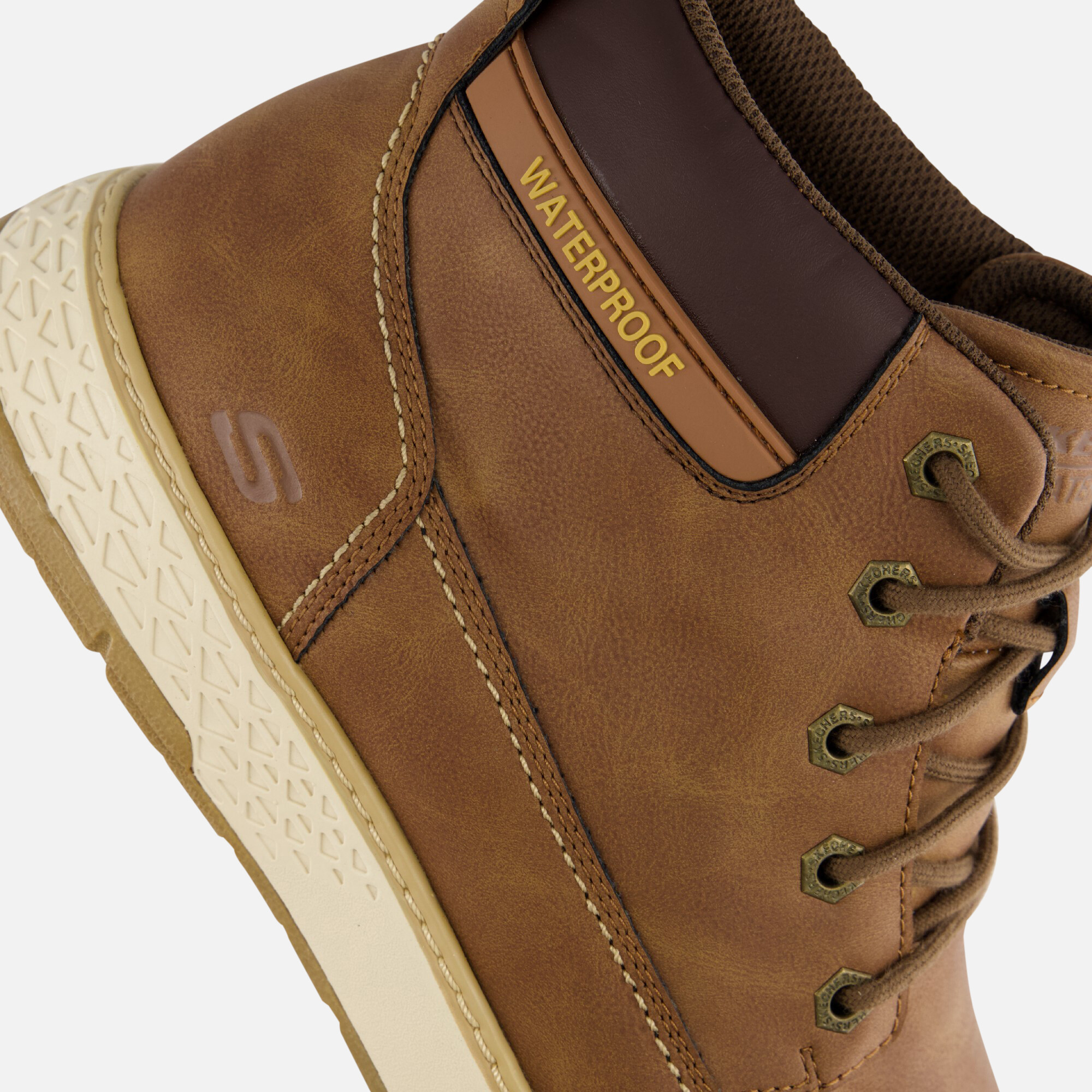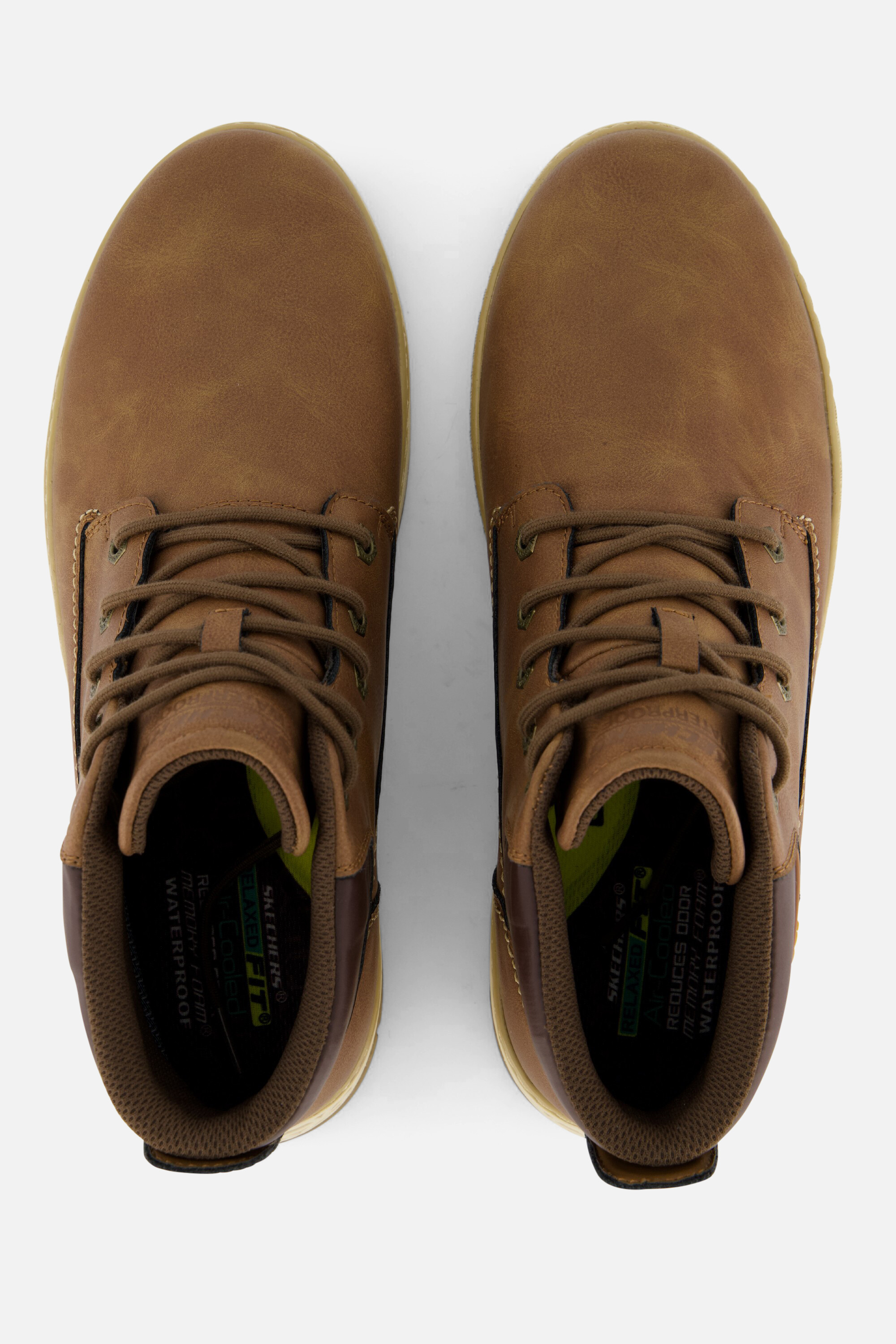 Deze Skechers Garlan veterboots hebben een bovenwerk van synthetisch meteriaal en vegan leer. De voering en comfortabele binnenzool is van textiel. Voorzien van air-cooled memory foam voor comfort en waterbestendig materiaal. De zool is gemaakt van rubber en heeft een dikte van 2 centimeter.