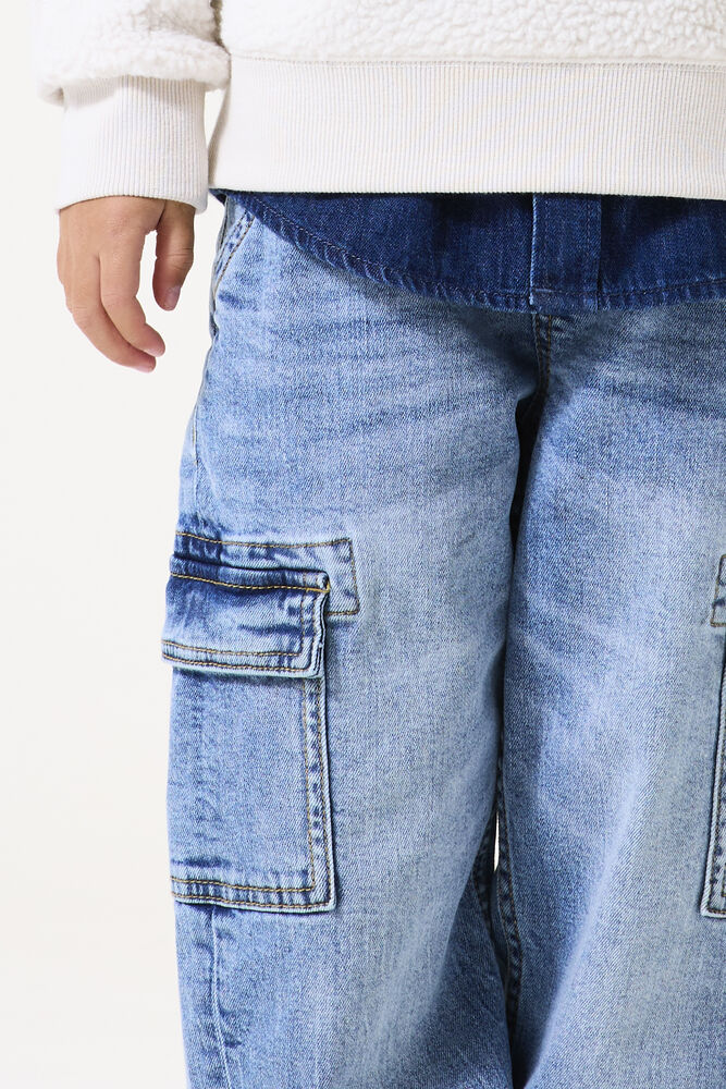Comfortabele jeans met cargo zakken. Deze jeans heeft een elastische tailleband, een relaxed taille en een straight leg fit. Dit item is gemaakt van 79% katoen, 20% gerecycled katoen en 1% elastaan, wat zorgt voor een fijne stretch en draagcomfort.