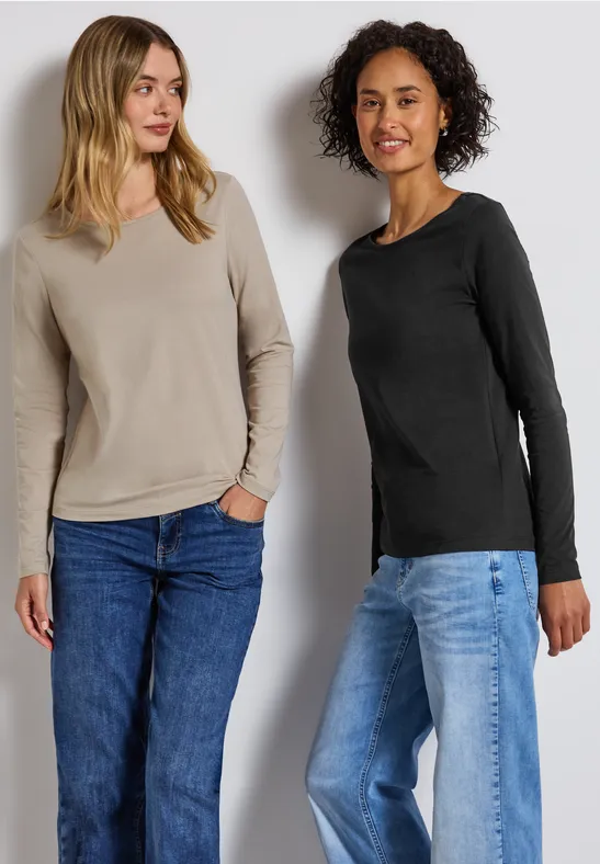 Street One Dames 2-pack shirts met lange mouwen in Multicolour, in size: 36