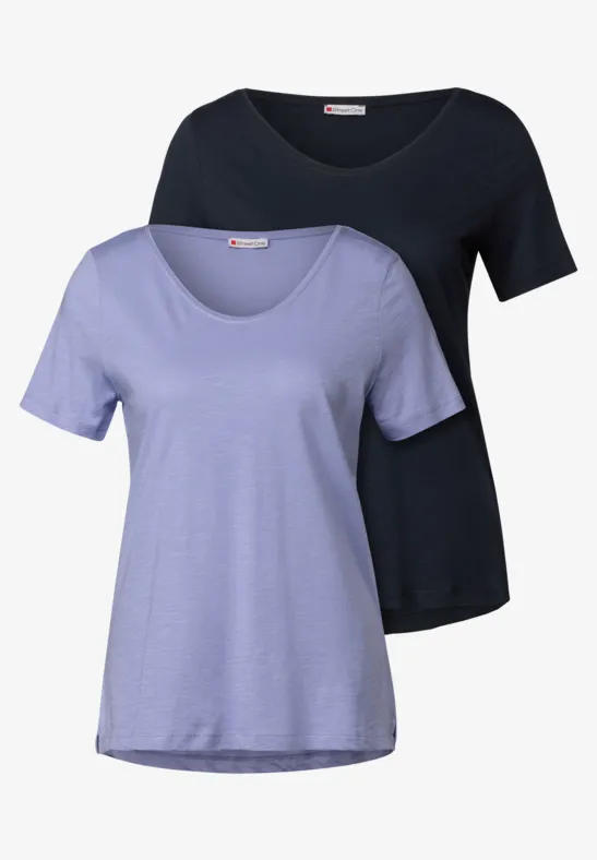 Street One Dames 2-pack V-hals Shirt in Blauw|Paars, in size: 34