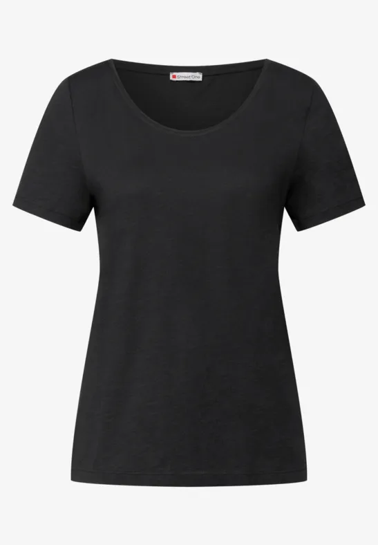 Het Shirt Gerda van Street One voor dames heeft een vrouwelijke V-hals, korte mouwen en een afgeronde zoom. De katoen-modaalmix zorgt voor een zacht gevoel. Hierdoor is het Shirt ideaal om te mixen en matchen.