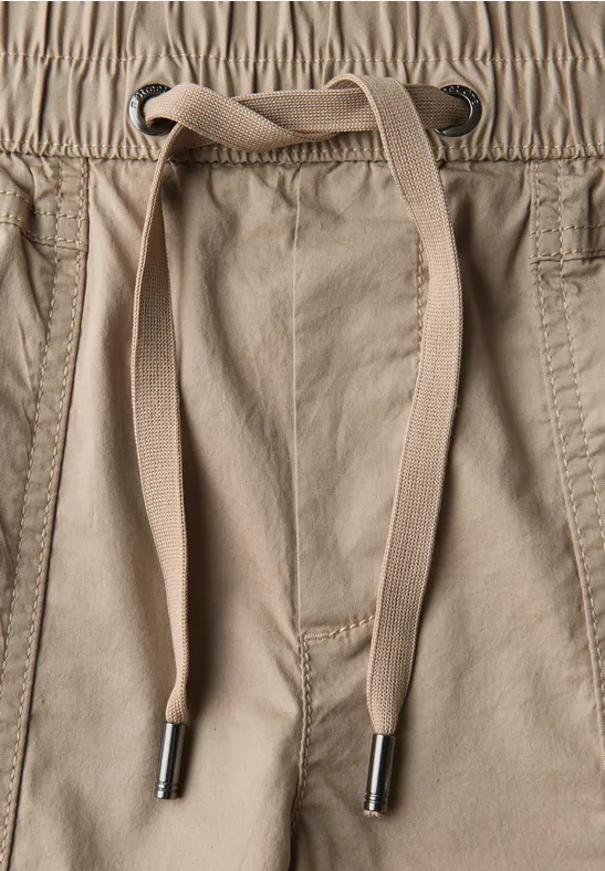 De Bonny-broek van Street One voor dames maakt indruk met zijn knusse Loose Fit, Mid Waist en Slim Legs - perfect voor casual alledaagse looks. De elastische tailleband met trekkoord zorgt voor een comfortabele pasvorm, terwijl het omslagdetail op de 3/4-pijpen een sportief accent toevoegt. De katoenmix met stretch geeft deze damesbroek een comfortabel gevoel.