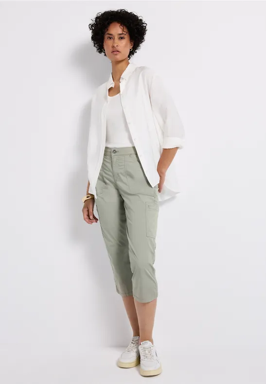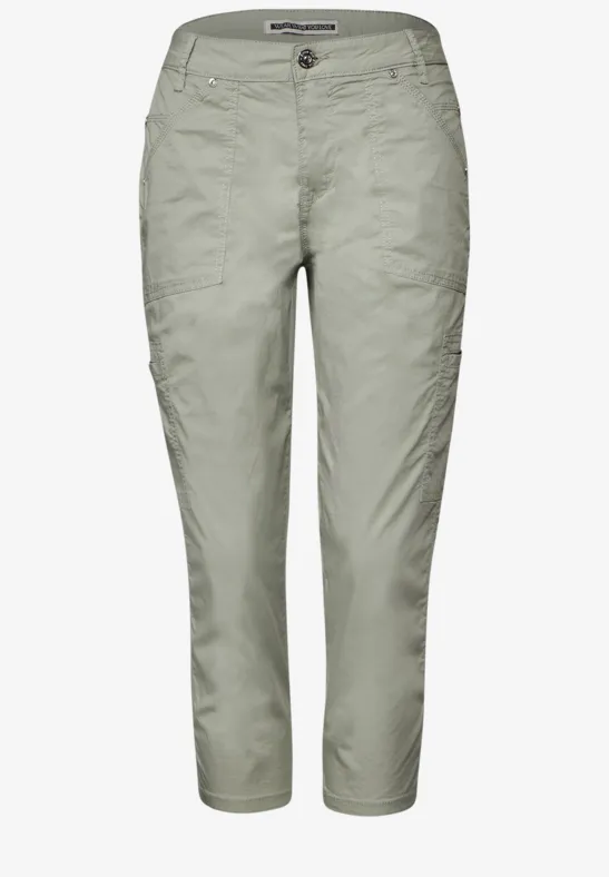 Street One Dames 3/4 satijnen broek met zakken in Groen, in size: 32