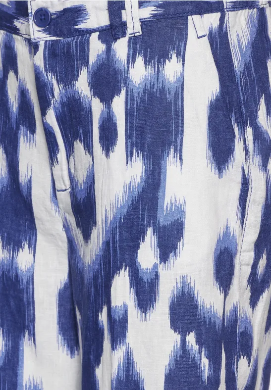 Street One 7/8-broek van linnen, loose fit, hoge taille met wijde pijpen, elastische band aan de achterkant en steekzakken, comfortabel en luchtig, ikat-patroon