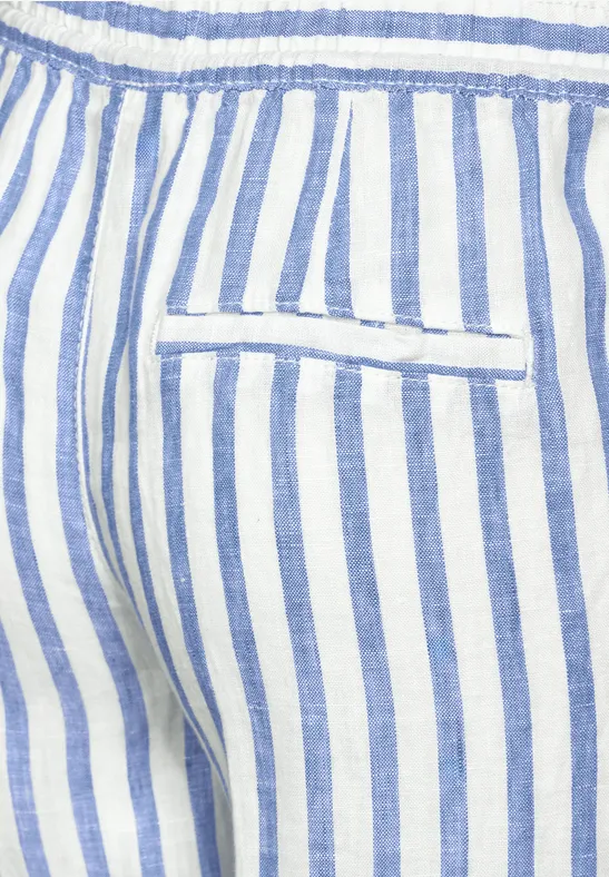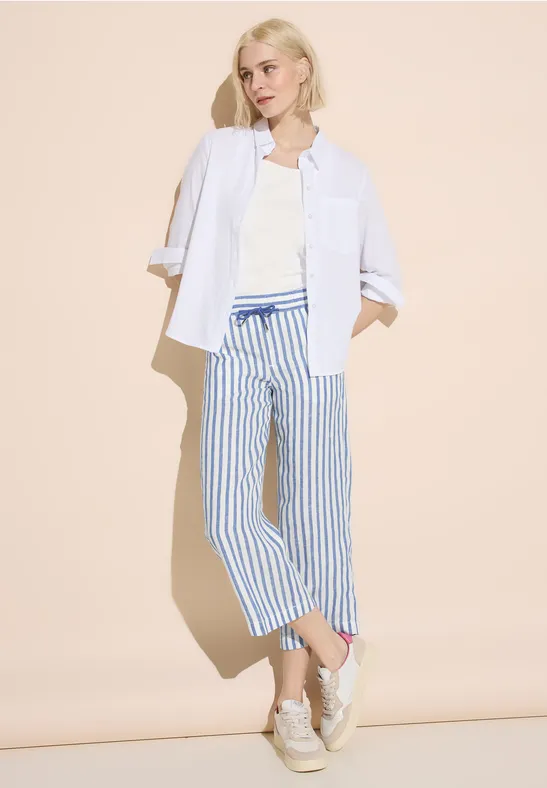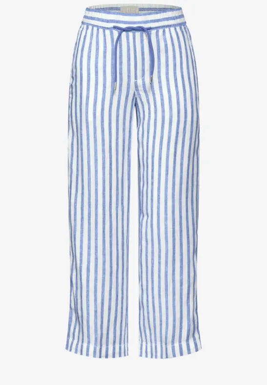 Street One 7/8-culottebroek van linnen, gestreepte zomerbroek, middelhoge taille met wijde pijpen, elastische band, trekkoord en steekzakken, comfortabel en luchtig