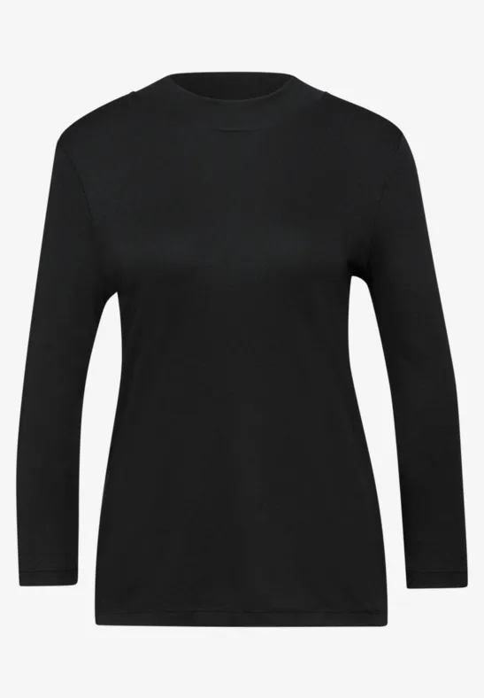Street One Dames Basic col shirt in Zwart, in size: 34