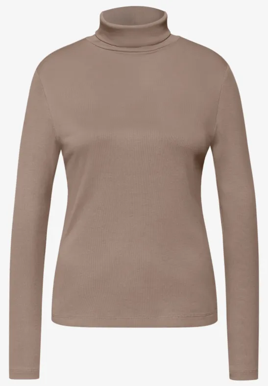 Dit colshirt van Street One voor dames heeft een zachte geribbelde textuur en een eenvoudige effen kleur. Een ongecompliceerde essential die op verschillende manieren gecombineerd kan worden - alleen of in laagjes.