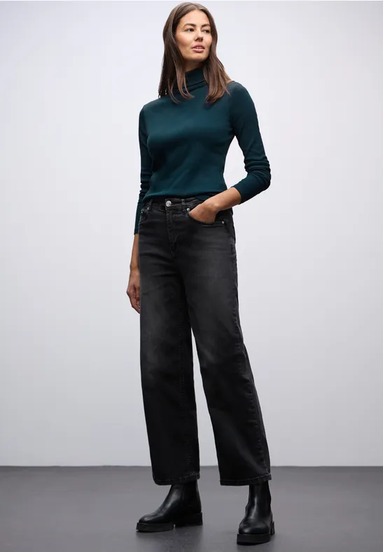 Dit colshirt van Street One voor dames heeft een zachte geribbelde textuur en een eenvoudige effen kleur. Een ongecompliceerde essential die op verschillende manieren gecombineerd kan worden - alleen of in laagjes.