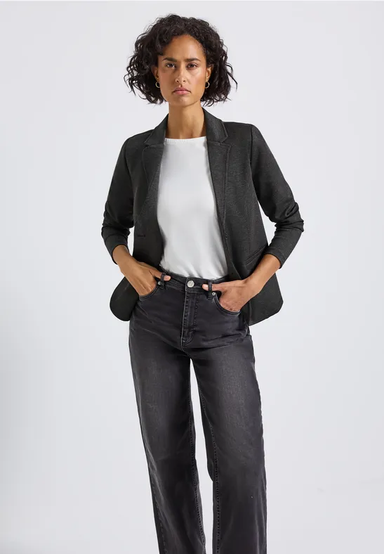 De Street One basic blazer voor dames is een echte must-have voor stijlvolle alledaagse looks. Met zijn klassieke reverskraag en aansluitende snit kan hij op verschillende manieren worden gecombineerd - casual met jeans of elegant op kantoor. De comfortabele pasvorm maakt het de ideale metgezel voor elke dag.