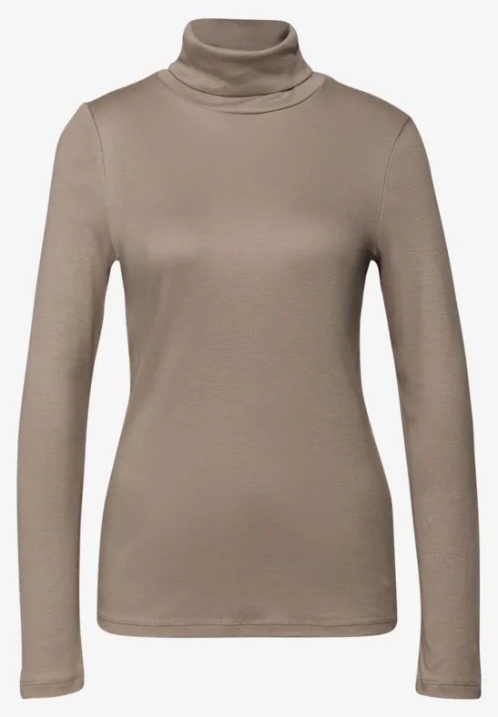 Street One Dames Basic shirt met coltrui in Bruin, in size: 36