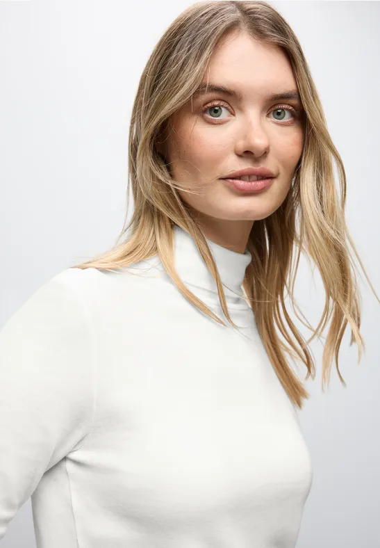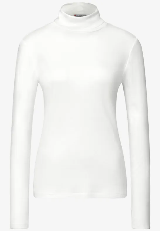 Street One Dames Basic shirt met coltrui in Wit, in size: 40
