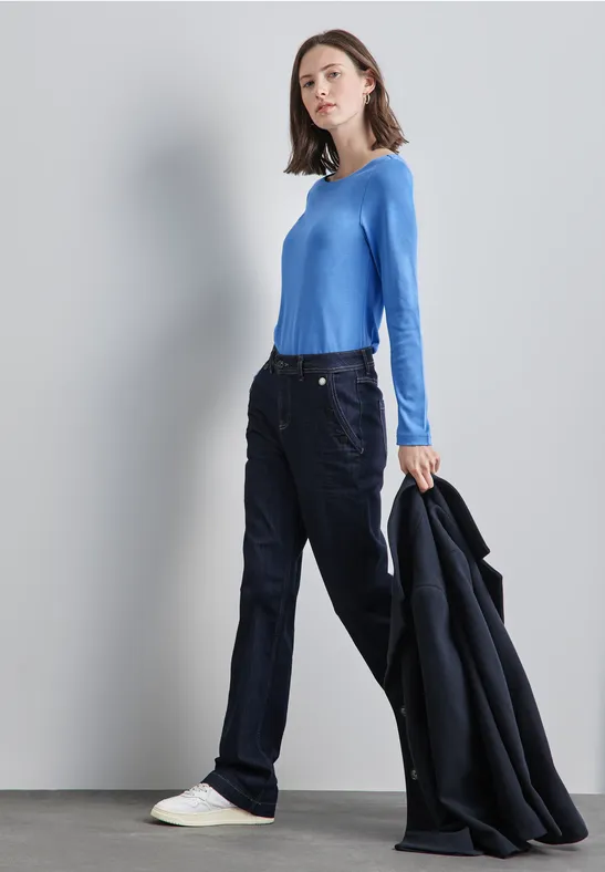 Street One Dames Basic shirt met lange mouwen in Blauw, in size: 46