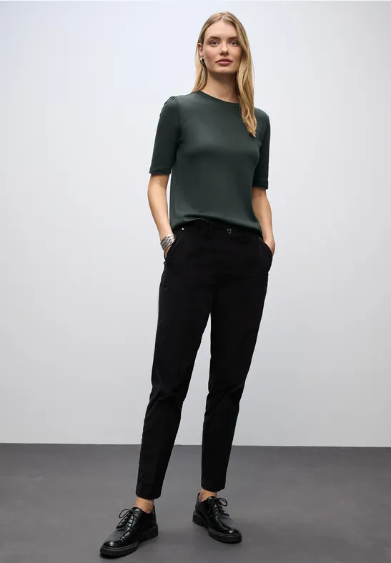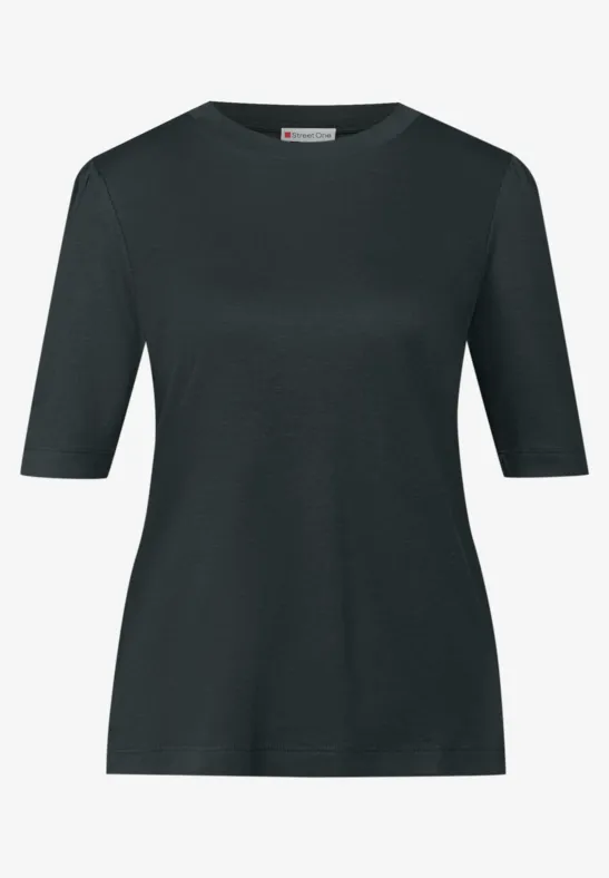Dit basic Shirt van Street One voor dames heeft een vrouwelijke twist dankzij de fijne rimpels op de schouders. De zachte katoen-modaalmix maakt het bijzonder comfortabel om te dragen, terwijl de klassieke ronde hals veelzijdige stylingopties biedt. Een ongecompliceerde favoriet voor elke dag.