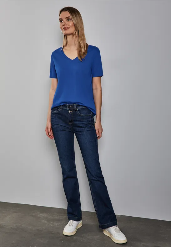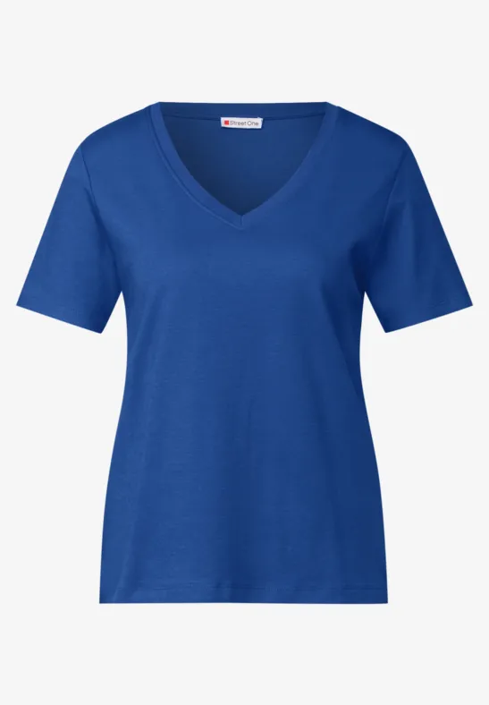 Het basic V-hals Shirt van Street One voor dames is een veelzijdige allrounder met een vrouwelijke V-hals en korte mouwen. Puur katoen maakt het comfortabel om te dragen. Een must-have voor je garderobe die ideaal is om te mixen en matchen.