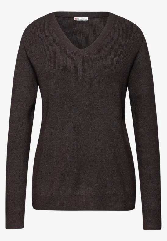 Street One Dames Basic trui met V-hals in Bruin, in size: 38