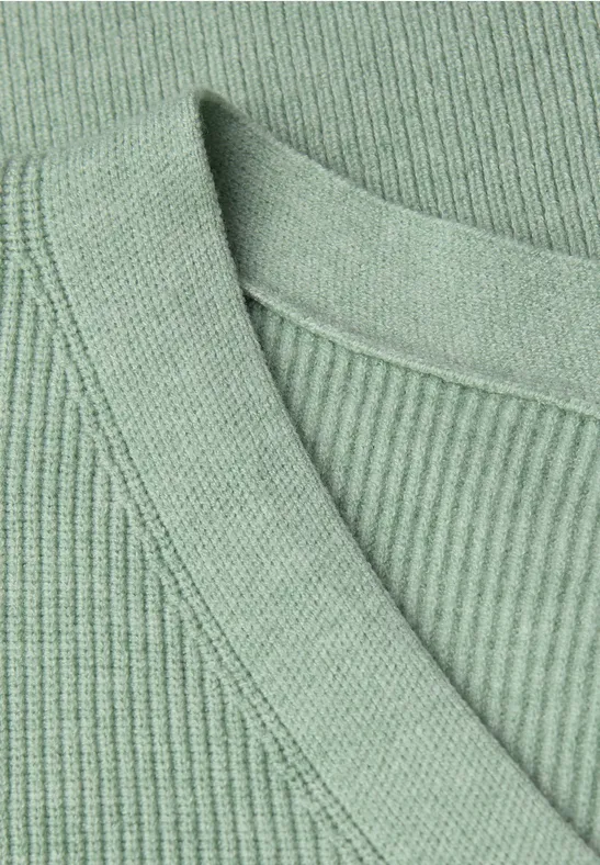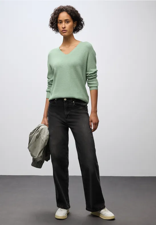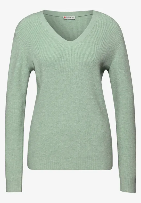 Street One Dames Basic trui met V-hals in Groen, in size: 42