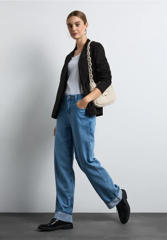 Ontdek de perfecte mix van stijl en comfort met deze lichtgewicht damesblazer. Dit veelzijdige damesjack is ideaal voor elke gelegenheid, van een dag op kantoor tot een avondje uit. De blazer is voorzien van een elegante kapelkraag en praktische zakken, waardoor je eenvoudig essentiële spullen bij de hand kunt houden. De 2-knoopssluiting geeft een chique uitstraling en zorgt voor een verfijnde look. Met lange mouwen is dit jack geschikt voor zowel het voor- als het najaar. De comfortabele materiaalmix biedt niet alleen een aangename pasvorm, maar zorgt ook voor optimale bewegingsvrijheid. Met zijn eenvoudige maar moderne ontwerp is deze blazer een onmisbaar item in je garderobe. Combineer het met een blouse en een strakke broek voor een professionele uitstraling, of draag het over een casual outfit voor een stijlvolle touch. Verhoog je modegame met deze tijdloze blazer, die naadloos aansluit bij jouw unieke stijl.