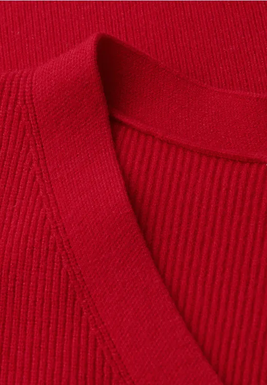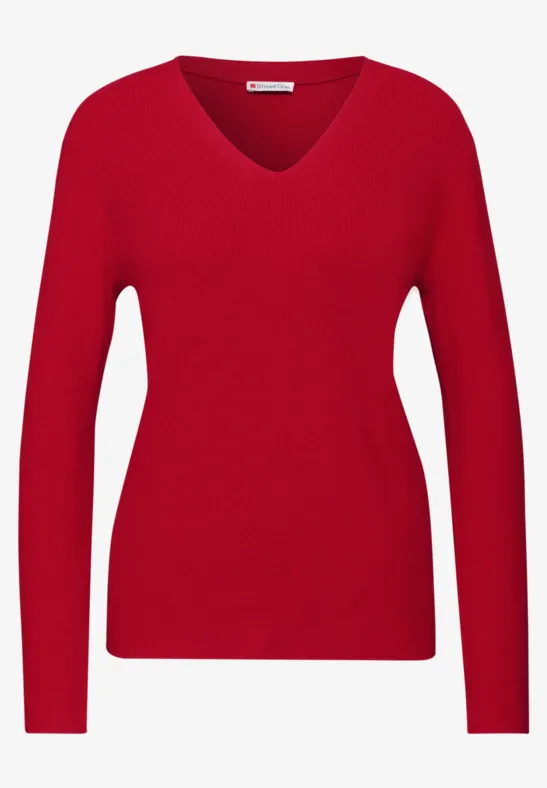 Street One Dames Basis trui met V-hals in Rood, in size: 36