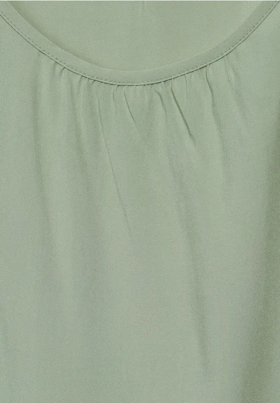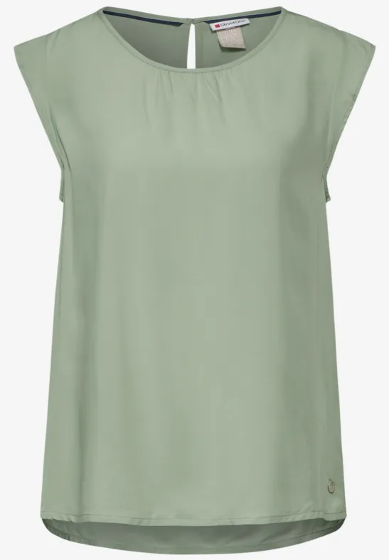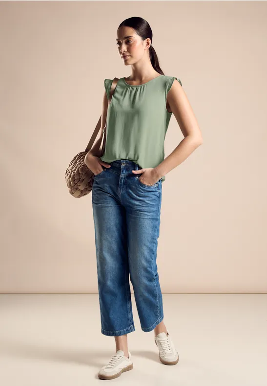 Street One blousetop met ruches, mouwloos, split met knoop bij de hals, golvende ruches bij het armsgat, fijne plooien bij de hals, zachte viscosekwaliteit